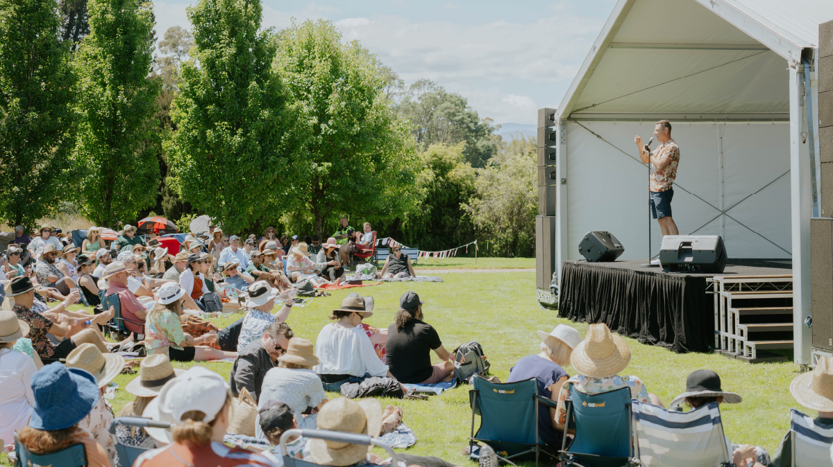 Another stellar lineup of comedians will join us on the lawns at Josef Chromy Wines for six hours of comedy, wine, music, and the best festival vibes.